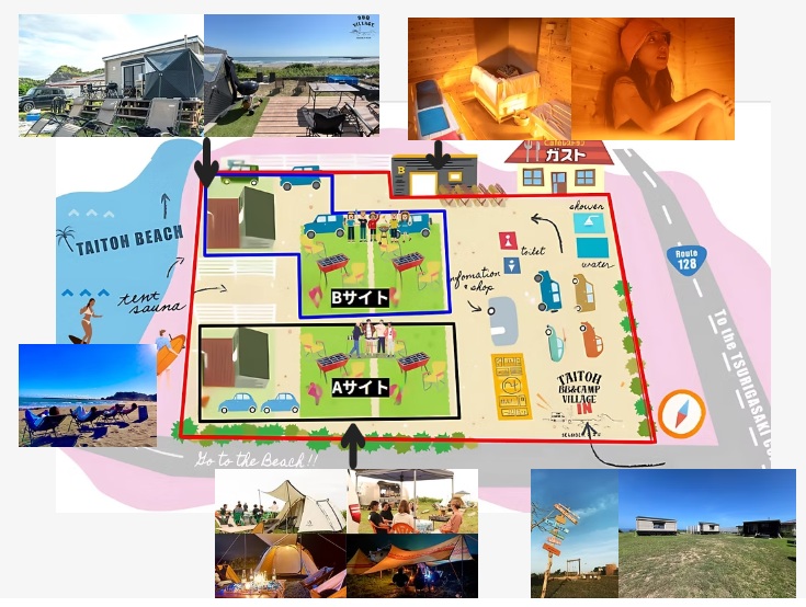 海まで約96歩という抜群の立地にあり、、キャンプ・デイキャンプ・バーベキュー(BBQ)・サーフィン・海水浴・釣り・ゴルフ・散策・サイクリング・グルメ巡り・ワーケーションまで、