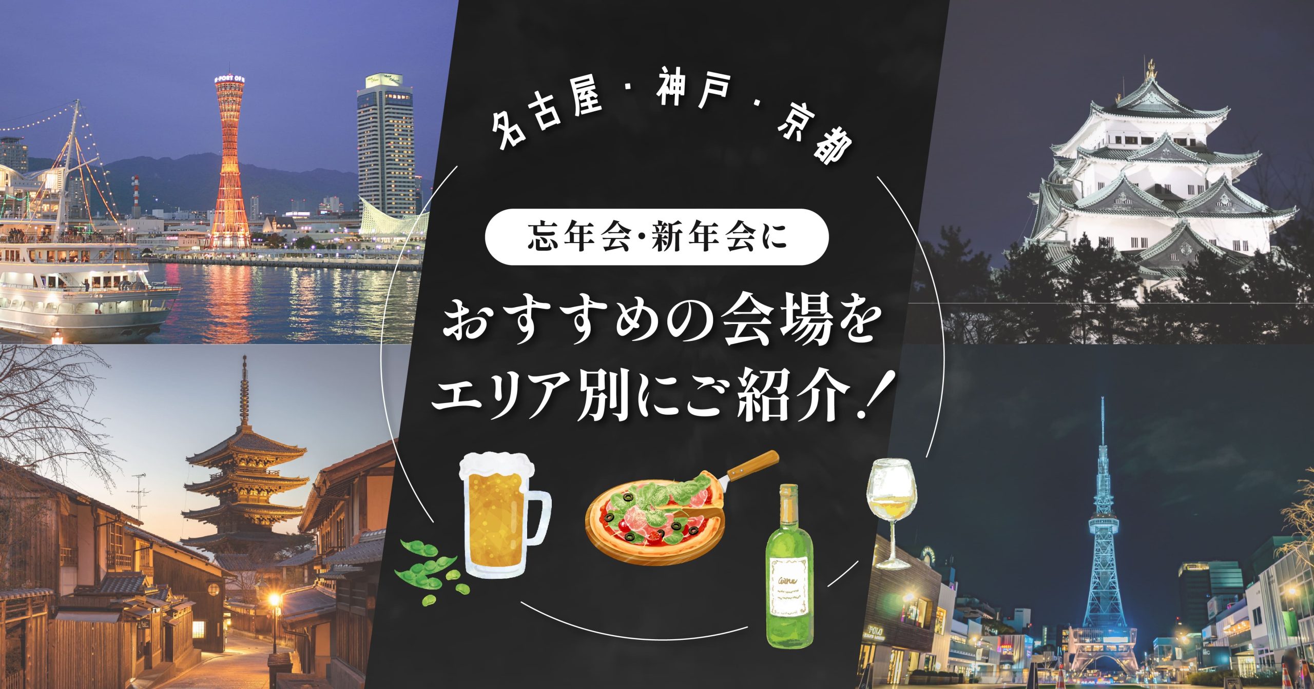 もうすぐ忘年会・新年会シーズン。一年を締めくくるor新たな一年をお祝いする場所は決まりましたか?まだ決まってないという方に向け、この記事では名古屋・神戸・京都の忘年会・新年会におすすめの会場をご紹介します!
