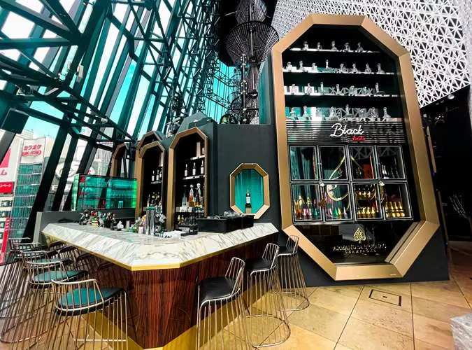 「SUKIYABASHI HALL」は、銀座のランドマークの一つである「東急プラザ銀座」の中にあるクラブ。6層吹き抜け構造で天井高は27mもあり、まるで銀座の空に浮かぶような開放感を味わえます。店内はブラック×ゴールドを基調としており、高級感もたっぷり。世界トップクラスのサウンドシステム、7面の大型LEDスクリーン、計49台の照明機材を完備しており、会場全体でダイナミックな演出が可能です。