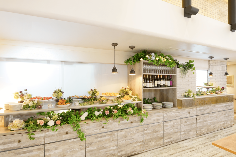 木目とレンガをアクセントにした、ヨーロッパのカフェバーのような空間。白を基調とした店内はおしゃれな雰囲気と清潔感に溢れており、旧友との特別な時間を過ごしたい時にぴったりです。最大で130名まで収容可能と十分なキャパシティがありながらも、どこかアットホーム感がある点も同窓会にぴったり。各種演出アイテムもひと通り揃っていて、演出にもこだわれます。