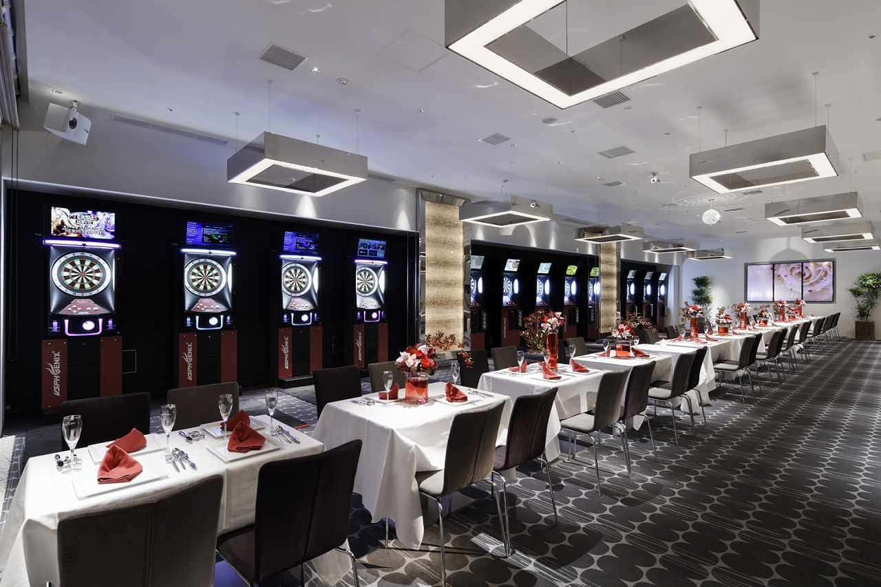 オープンフロアには8台のダーツ台を完備。投げ放題のプランもあり、大人数のパーティーでも参加者全員でお楽しみいただけます。