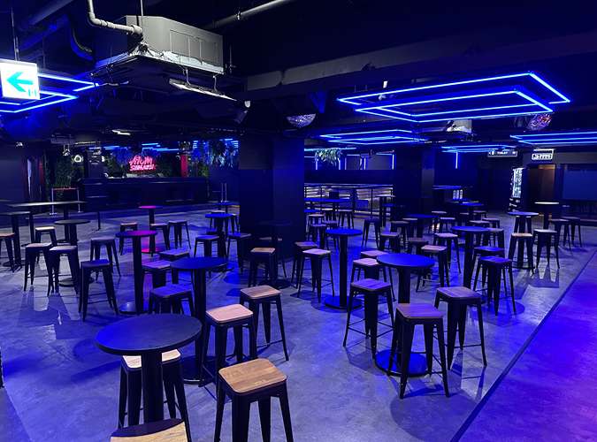新宿三丁目駅から徒歩1分、新宿駅からもアクセス良好な「ミュージックレストランアペクシア」は、最大800名まで対応可能な大型貸切会場です。2フロア構成で、8階は天井高くLEDが輝く非日常的な空間が広がり、入場時から圧倒的なインパクトを演出。歓送迎会や忘年会、企業イベントなど大規模パーティーにぴったりの環境です。特別な演出をご希望の方もお気軽にご相談ください。