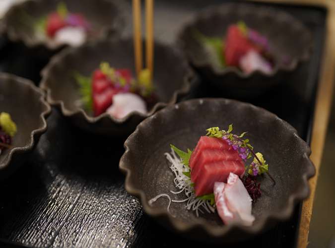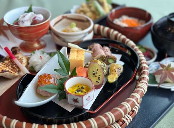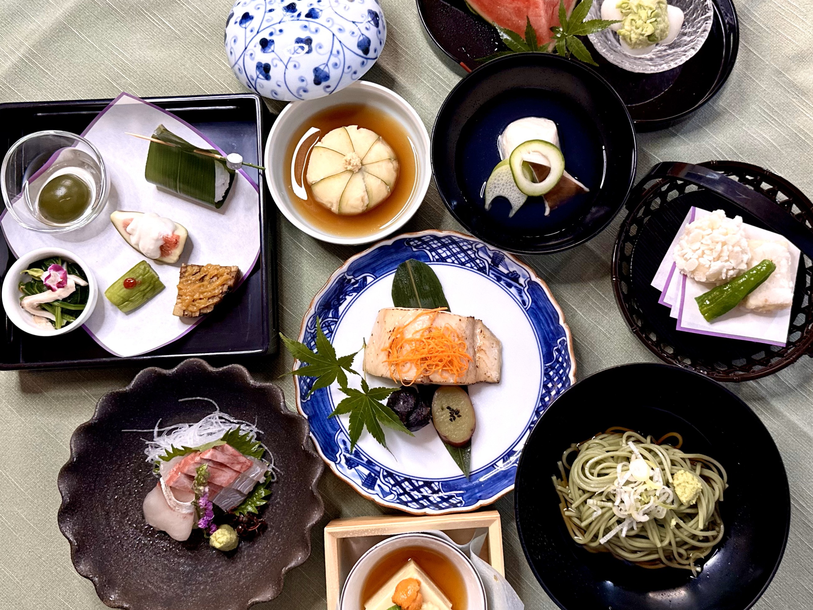 有名ホテルや料亭出身の料理長が手掛ける本格会席料理を、旬の食材と季節感を大切にアレンジ。前菜から焼き物、揚げ物、刺身、食事まで構成されたメニューは、ゲストの年齢層や好みに合わせてご提案します。お飲み物はスパークリングワイン、赤・白ワイン、ウィスキー、焼酎、日本酒など幅広く揃え、和洋どちらの料理とも相性抜群。会席スタイル、ビュッフェスタイルの両方に対応します。