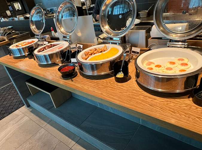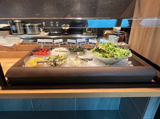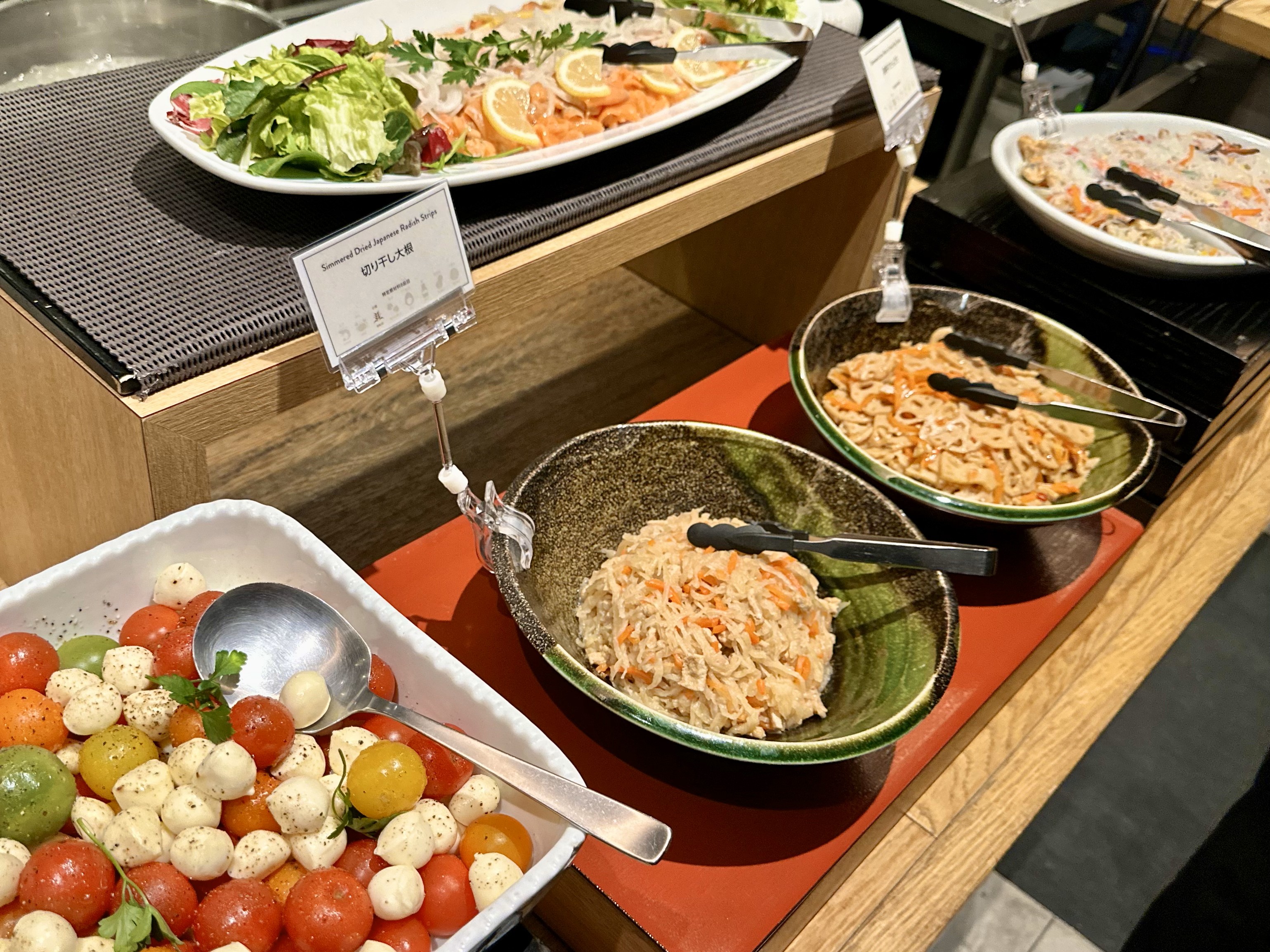 ホテルレストランならではの充実設備を完備。大個室はクロークや控室として利用でき、Barエリアでのウェルカムドリンク提供も可能です。ビュッフェ設備に加え、プロジェクター、自立スクリーン(100型)、ワイヤレスマイク、Bluetooth対応スピーカーを用意。映像や音楽を活用した演出が行え、企業イベントや記念パーティーにも最適です。