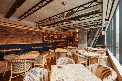 東京メトロ銀座駅から徒歩2分、GINZA SIX内にある「L'atelier de oto(ラトリエ ド オト)」は、ナチュラルウッドとレンガ、そしてブルーの差し色が映える洗練された空間。大きな窓からは銀座の街並みを一望でき、昼は自然光が降り注ぐ明るい雰囲気、夜はムーディーで特別感のある時間を演出します。着席58名、立食100名までの貸切が可能で、カジュアルからフォーマルまで幅広いシーンに対応。銀座での貸切パーティーにぴったりのロケーションです。