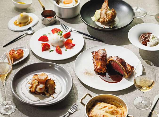 RED U-35受賞の女性シェフが手がける料理は、繊細さと力強さを兼ね備えたビストロスタイル。グラブラックスや鶏のディアブル風マスタードソース、ビーフピラフなど、クラシカルでありながらモダンな一皿が揃います。瓶ビールやワイン、ウイスキーなどのフリードリンクとともに、料理とのペアリングを堪能。+500円で生ビールやスパークリングも選べるのも魅力です。銀座の夜景とともに、五感で味わう美食体験をご堪能ください。