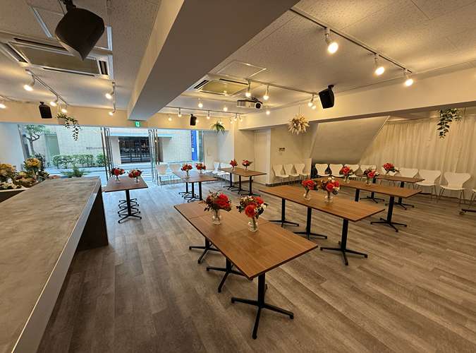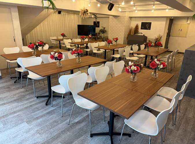 6月1日新規OPEN!!立食100名・着席60名まで対応可能 北欧ナチュラルをテーマにしたイベントスペース 五反田駅徒歩3分の好立地で1Fの開放的な空間です。 会議・イベント・パーティなど様々な用途でのご利用が可能です。