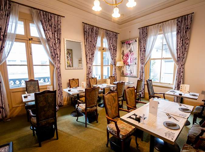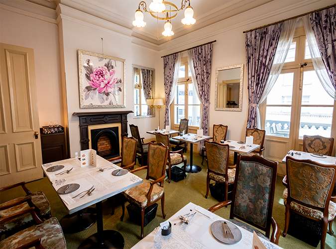 1Fパティスリー&紅茶カウンター、2Fサロンの階層構成で、貸切時は着席30名まで対応。可動式の椅子・テーブルで自由にレイアウト変更でき、QRコード決済や電子マネー決済にも対応し、受付から演出までスムーズに。神戸元町エリアで少人数貸切をお考えの方は、ぜひご相談ください。