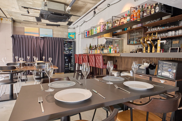 店内にはL字型カウンター席、テーブル&イス席、片側ソファ席の3タイプを完備。全て可動式のため着席62名、立食20名〜80名までフレキシブルにレイアウト可能です。また、店先テラス席も利用でき、Wi-Fi、TV・プロジェクター、マイク、喫煙スペースを無料でご提供。パーティーやセミナーなど多彩なシーンに対応します。お気軽にご相談ください。