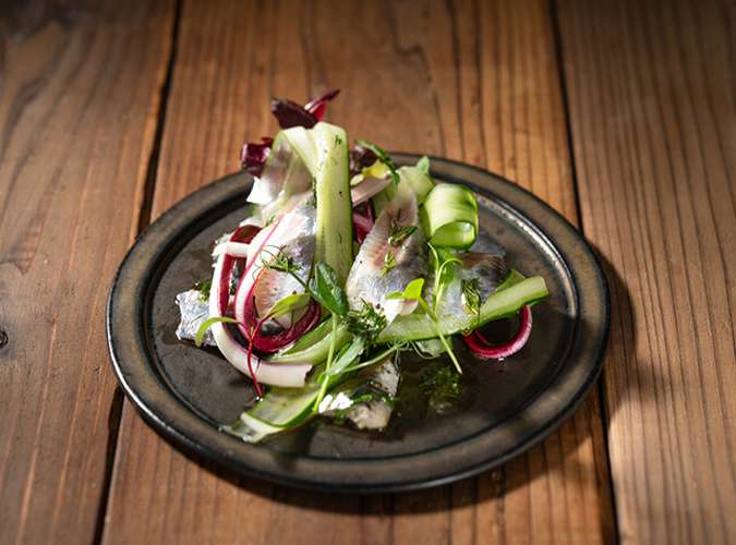 大阪近郊から取り寄せた、新鮮な食材を活かしたメニューが自慢。