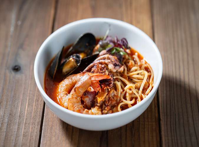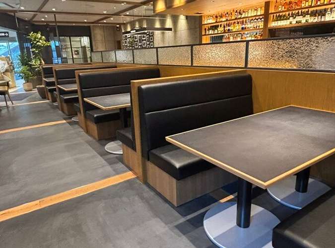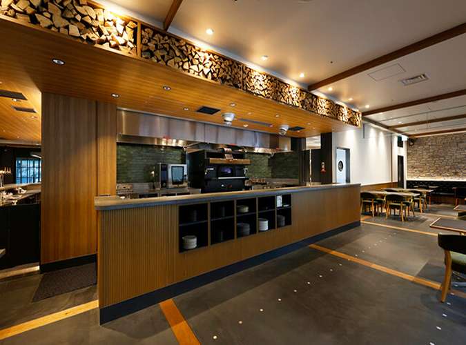 ナチュラルウッド×ブラックを基調とした店内は、上質感とカジュアル感がほどよく調和した空間。