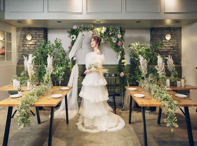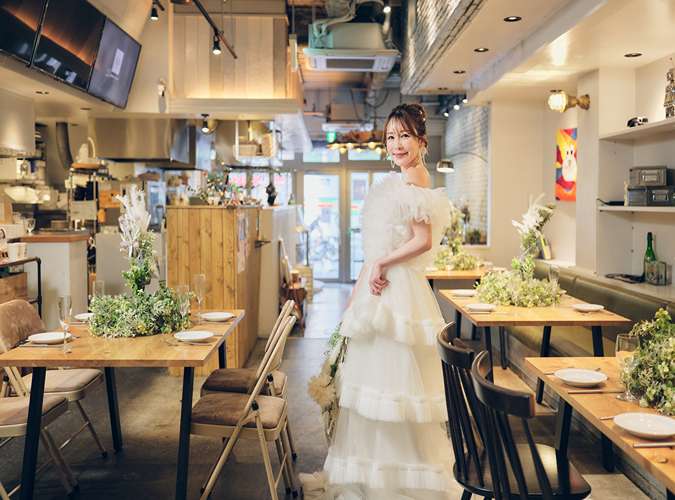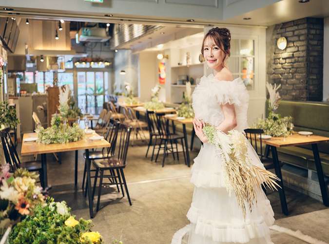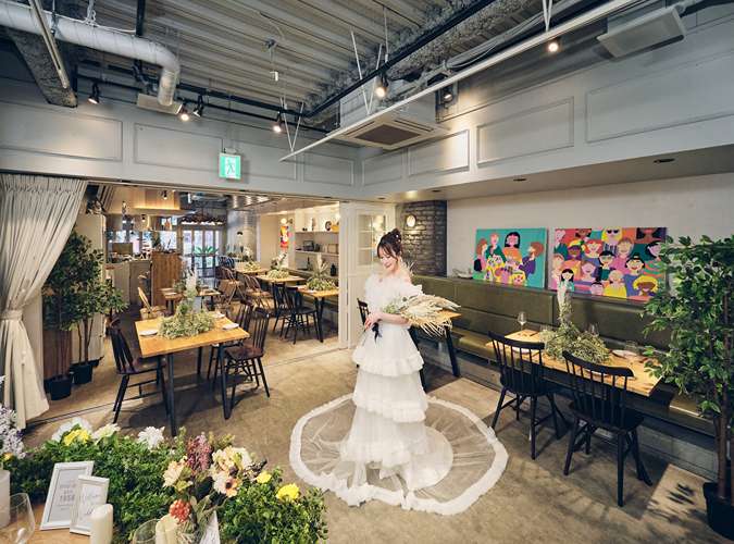 ホワイトを基調とした、ややインダストリアルな雰囲気の店内は、特別な日にぴったりな洗練された空間。
