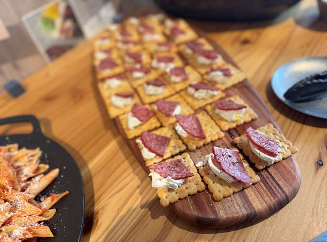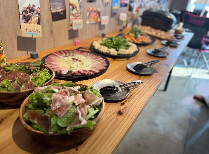 料理はご予算に合わせて5品から10品までのコースを用意。リーズナブルプランからプレミアムプランまで選べ、クラフトビール飲み放題や乾杯シャンパン付きのプランも楽しめます。タパスや肉料理など、アウトドア気分を盛り上げるラインナップが魅力です。飲み放題は最大3時間まで対応可能で、忘年会や新年会、歓送迎会など幅広いシーンでご利用いただけます。キャンプ気分の中で、美味しい料理とお酒を心ゆくまで堪能してください。