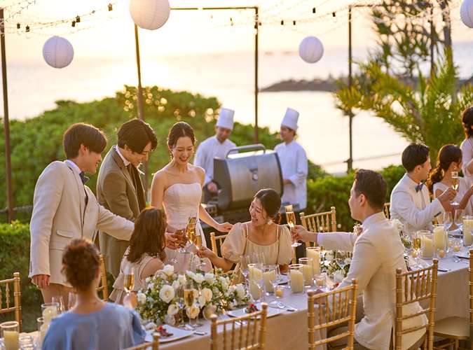 テラスやガーデンでは、シェフによるライブBBQ演出でリゾートらしいパーティーを。