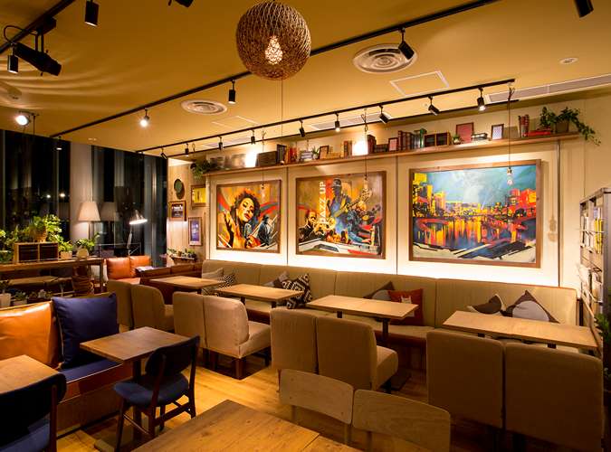 市営地下鉄空港線「天神駅」7番出口直結、西鉄福岡(天神)駅からもすぐの好立地。壁一面に描かれたウォールアートや、明るいウッド調の内装が印象的な店内は、音楽・アート・カルチャーが融合した洗練された空間です。ゆったりとしたソファ席や、天神の街を望む開放的なガラス窓の席もあり、パーティーやイベントにもぴったり。福岡・天神エリアで貸切できるおしゃれな空間をお探しの方におすすめです。