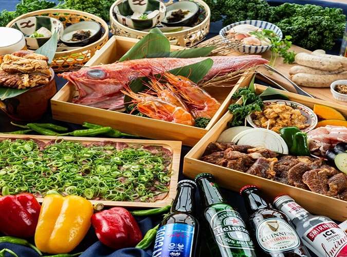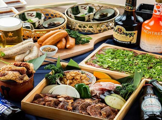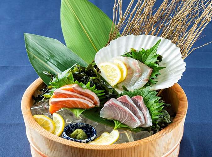 旬の新鮮な食材をふんだんに使用し、熟練のシェフが腕を振るう。和食をベースにイタリアンや中華などの調理方法を織り交ぜた創作料理は、味わいも見た目味も絶品。コースでは季節のかご盛りから始まり、舟盛、魚料理、肉料理、ご飯物まで豪華なラインナップを味わえる。フリードリンクはビールやハイボール、焼酎などベーシックなメニューからセレクト可能。上質なワインや日本酒も取り揃えられており、お酒好きが多いパーティーでも喜ばれる。