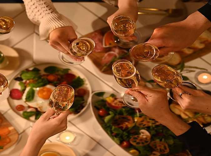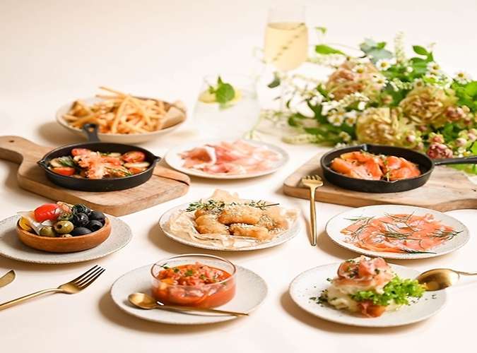 メインはチキンのコンフィでボリュームもあり、プランによってはデザートも味わえるため、ゲストの満足度は抜群。フリードリンクメニューはビールやハイボールに加え、カシスリキュールやピーチリキュールを使ったカクテル、赤白ワインなどからセレクト可能。ソフトドリンクも6種類を取り揃えており、ノンアル派も楽しめる。