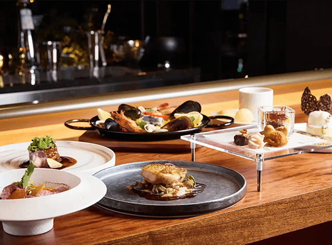 三井ガーデンホテル銀座築地14階に位置する当店は、少し贅沢に楽しみたいお食事も、大切なお祝いにもご利用いただける上品な空間です。薪の炎をイメージした照明や壁が印象的な店内で、雰囲気も抜群。新たな食体験をしたい方、お料理にこだわったパーティーをしたい方は、ぜひご利用をご検討くださいませ。レイアウトや演出など、各種ご相談も随時承っております。皆様のご希望にお応えできるよう尽力いたしますので、何なりとお申し付けください。