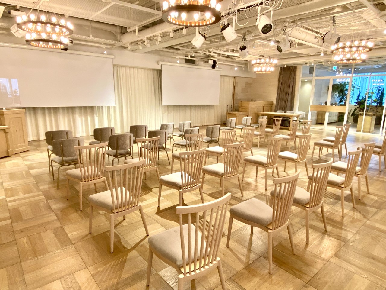 【渋谷駅各線より徒歩5分・最大130名様収容可能】駅からのアクセスも良く、また、オープンキッチンや、音・映像・ムービングライトの最新演出を使用し、会議~懇親会など、幅広い用途でご利用いただけます。