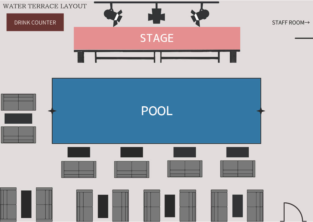 東急歌舞伎町タワー5階に位置する、開放感あふれるプール付きテラス空間。