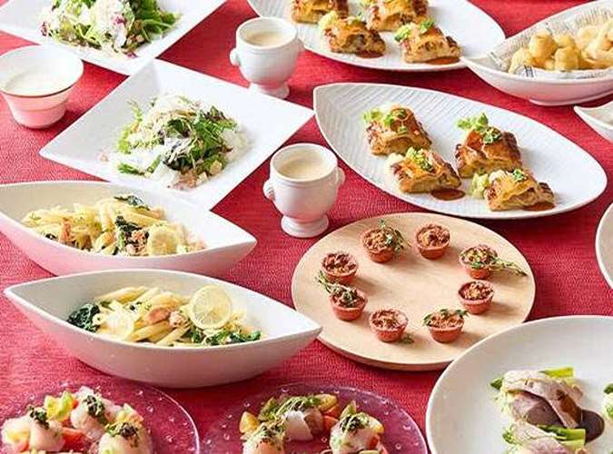シェフのこだわりが詰まった、正統派フレンチでおもてなし。ビュッフェスタイルかテーブルシェアスタイルかを選ぶことができ、いずれも見た目も華やかな料理が並ぶ。Wメインのプラン、デザートが充実したプランなど複数のプランがあり、パーティーの内容やゲストに合わせてセレクト可能。フリードリンクはビール、赤白ワイン、焼酎など、定番のメニューをバランスよくラインナップ。ソフトドリンクも揃っており、ノンアル派もしっかり楽しめる。