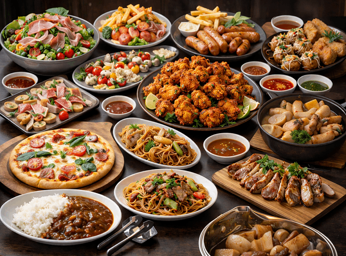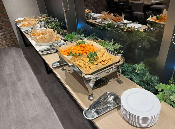 和洋中を取り入れたブッフェスタイルで、多様なニーズに対応しています。5,000円〜の飲み放題付きプランや、季節メニューを含むプランもあり、大人数の貸切パーティーにも最適です。豊富な飲み放題メニューと柔軟な対応で、満足度の高い時間を提供します。ご希望に合わせた内容をぜひご相談ください。