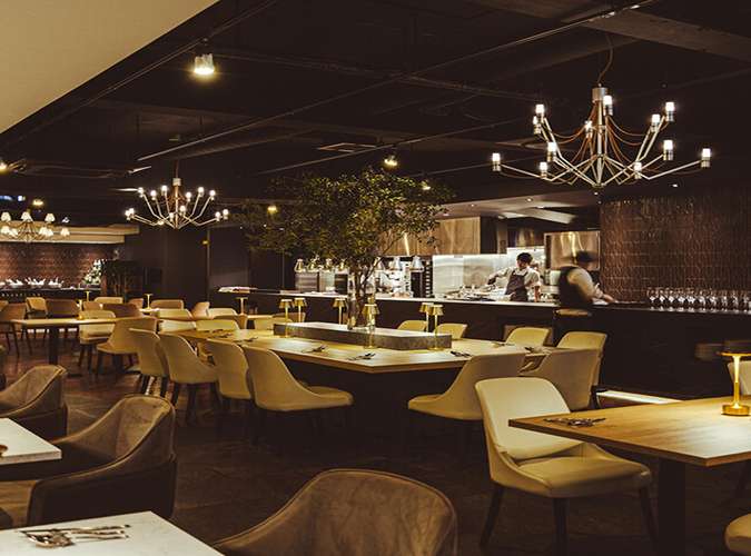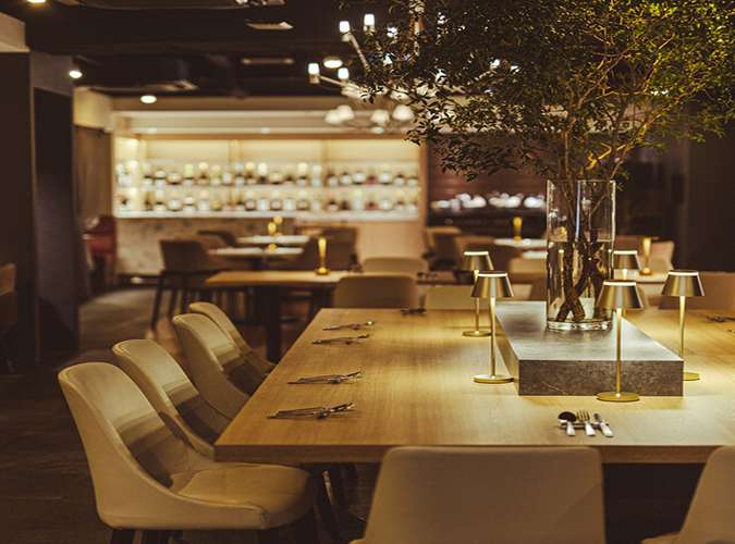 調理の音と香りが心地よく響くオープンキッチンを中心に、落ち着いたモダンインテリアで統一されたおしゃれな空間がお出迎え。ほどよい活気と落ち着きが調和する「ちょうど良い大人感」が魅力的で、肩肘張らずにリラックスしたい時にぴったり。また、元ホテル総料理長が手掛ける極上のフレンチをカジュアルに楽しめるのも贅沢なポイント。都会の喧騒を忘れ、大切なゲストと上質なひとときを味わいたい。