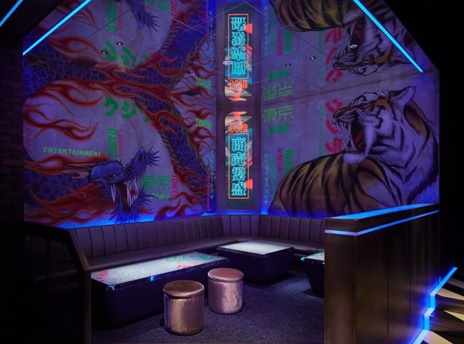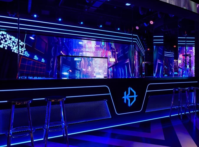 店内に足を踏み入れると、煌びやかなシャンデリアとカラフルに揺れるLEDライト、ハイセンスなアートに包まれ、新宿・代々木エリア屈指の異次元空間が広がります。大迫力の超巨大LEDビジョンや近未来的な映像演出がゲストを魅了し、貸切65名までのパーティーを華やかに演出します。まずはお気軽にお問い合わせください。