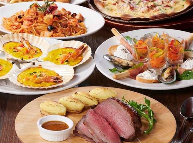タパス盛り合わせやシェフ特製パスタ、窯焼きピッツァなど本格イタリアンを豊富にラインアップ。お肉料理やシーフードも揃い、ビールやスパークリングワイン、赤白ワインをはじめ多彩なフリードリンクメニューと相性抜群です。+500円でワインカクテルやプレミアムドリンクも追加可能。ぜひご賞味ください。