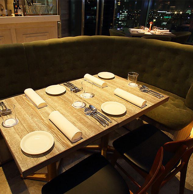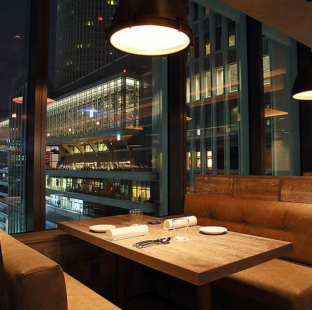 JRゲートタワー13階に位置し、名古屋駅改札を出てすぐアクセス可能。ガラス張りの大窓からは昼は陽光、夜は煌めく夜景を一望でき、ヴィンテージ素材とグリーン家具が調和するシックな空間です。着席110名・立食150名の規模感を活かし、貸切80名~で非日常のひとときを演出します。ぜひ内覧をお申し込みください。