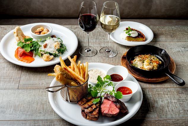 名古屋の旬素材を用いたアメリカンブラッセリー料理は、フムスやスキレットベイク、本格グリル料理が自慢。オープンキッチンで焼き上げる肉料理のシズル感と香りはパーティーの演出にもぴったりです。生ビール・ワイン・カクテルなど豊富なフリードリンクと合わせ、料理とドリンクのペアリングを存分にお楽しみください。メニューはご相談の上カスタマイズ可能です。