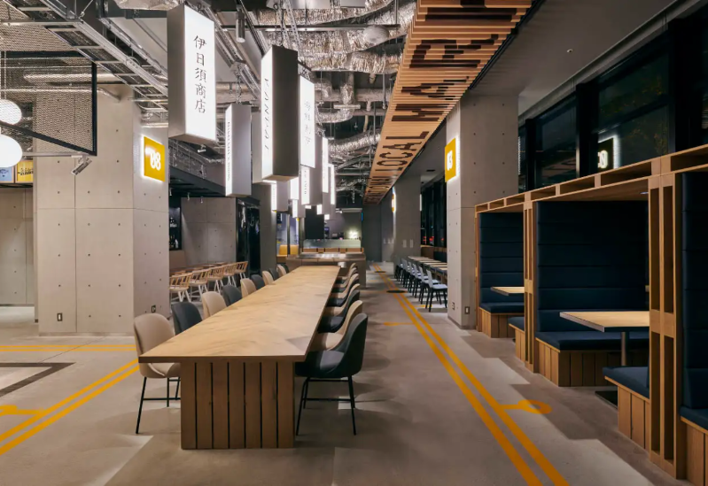 Market St.~マーケットストリート~ ibis STYLESは、ハワイ・ワイキキの「インターナショナルマーケット」をイメージしたおしゃれなオールデイダイニングです。打ちっぱなしコンクリート壁と温かみある木のインテリアが調和し、SNS映えするスタイリッシュな空間を演出。ガラス張りの大きな窓と高い天井が開放感を生み、名古屋駅近辺の貸切会場としても最適です。ゆったりとした時間が流れる雰囲気をぜひ体感してください。お問い合わせはお気軽にどうぞ。