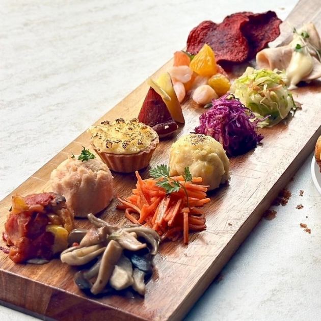 SNS映え抜群のカラフルなビュッフェスタイルで、ピンチョスやクロスティーニ、魚料理・肉料理をバランスよくご提供。ボリューム感とコスパに優れ、フリードリンク付きプラン(ビール・ワイン・カクテル)で心ゆくまで楽しめます。貸切目安人数60人〜のプランで、お好みのコースをお選びください。ぜひ料理の華やかさと味わいをご堪能ください。