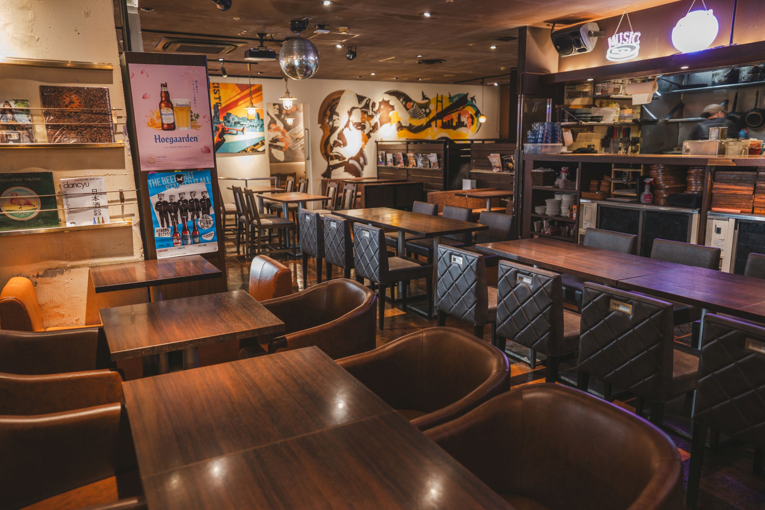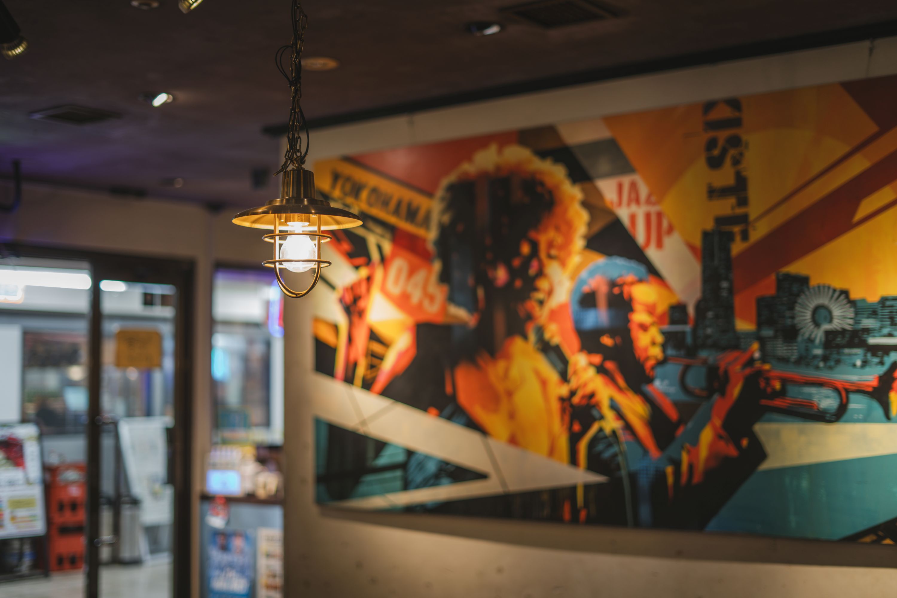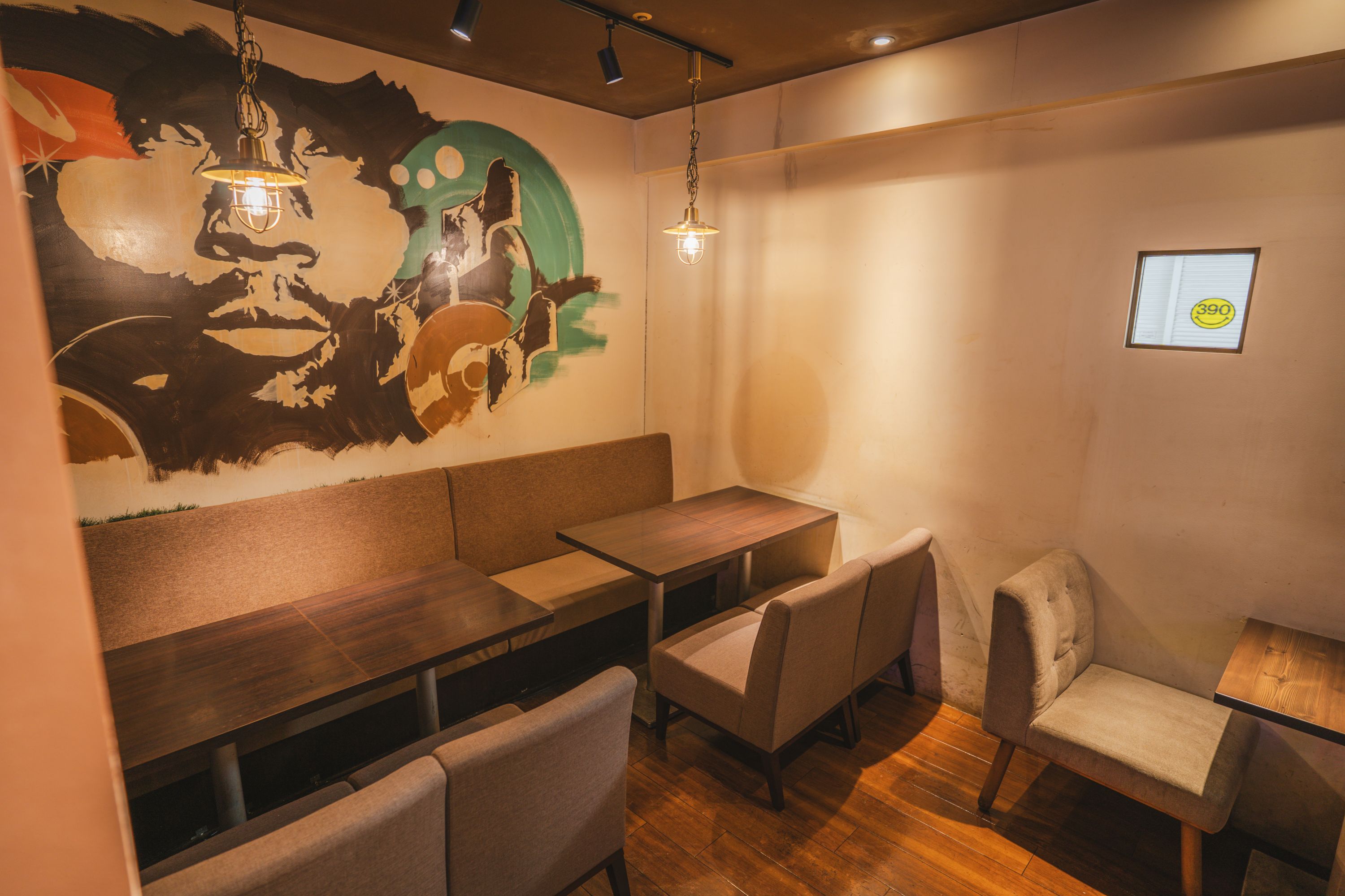 横浜駅から徒歩3分の立地にある新相鉄ビル1階の当店は、壁一面のアーティスティックなウォールアートとおしゃれなライト、ミラーボールを配したデザイナーズカフェダイニングです。大きな窓ガラスに囲まれ、昼は明るく開放的、夜はムーディーな貸切空間を演出。着席70名・立食100名の広さを活かし、結婚式2次会や忘年会、新年会など多彩なシーンにご利用いただけます。ぜひ一度現地をご覧ください。