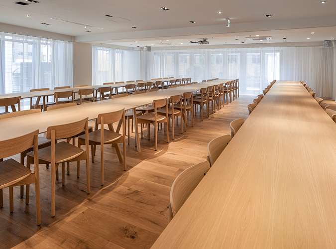 BENE-は、複合施設「THE PLAYHOUSE」3階に位置する、 “使いやすさ” と “デザイン性” を両立した貸切イベントフロアです。 南青山・骨董通りの一角に佇む白基調の開放的な空間は、 企業懇親会から総会・セミナー・展示会まで、 どんなスタイルにも柔軟にフィットする フラット構造 が魅力です。
