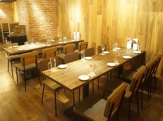 店内は着席で最大80名、立食で最大110名まで収容可能で、パーティーやイベントに最適な広さです。レイアウトは自由に変更でき、人数や目的に合わせた空間作りが可能です。また、10名まで利用できる半個室も完備しており、プライベートな飲み会にもぴったりです。さらに、プロジェクターやスクリーン、マイクといった演出アイテムも貸し出し可能で、映像や音楽を使った余興も楽しめます。企業のパーティーやウェディングパーティーにも対応できる設備が整っています。