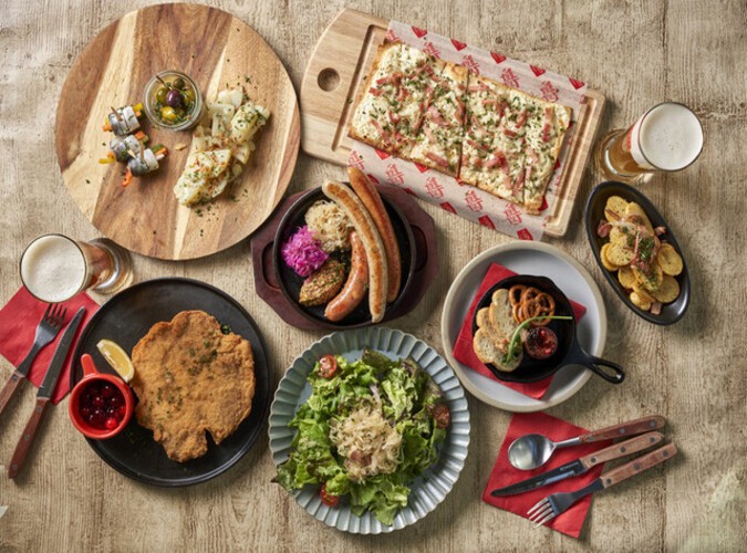「シュマッツ渋谷神南店」では、本場ドイツを意識した、ボリュームたっぷりの料理が揃っています。プレッツェルやジャーマンポテト、ソーセージなど、ドイツの定番料理を楽しめるコースメニューが人気です。季節の前菜やデザートも魅力的で、最後まで飽きることなく楽しめます。フリードリンクには、オリジナルクラフトビール3種類に加え、ハイボールやカクテルなど36種類のドリンクがラインアップされています。さらに、プレミアムプランに変更すると、すべてのクラフトビールが楽しめる特典も。
