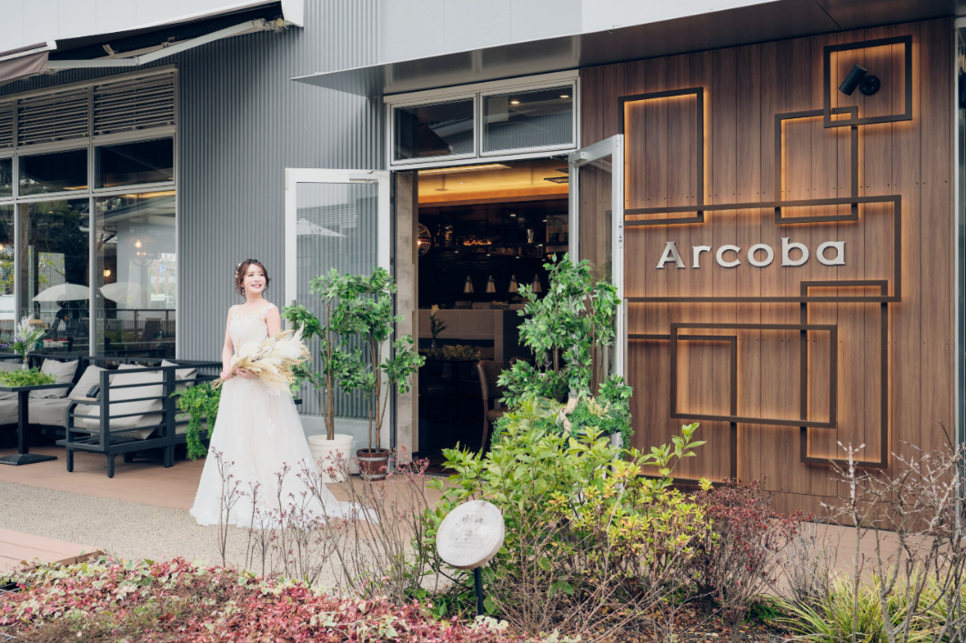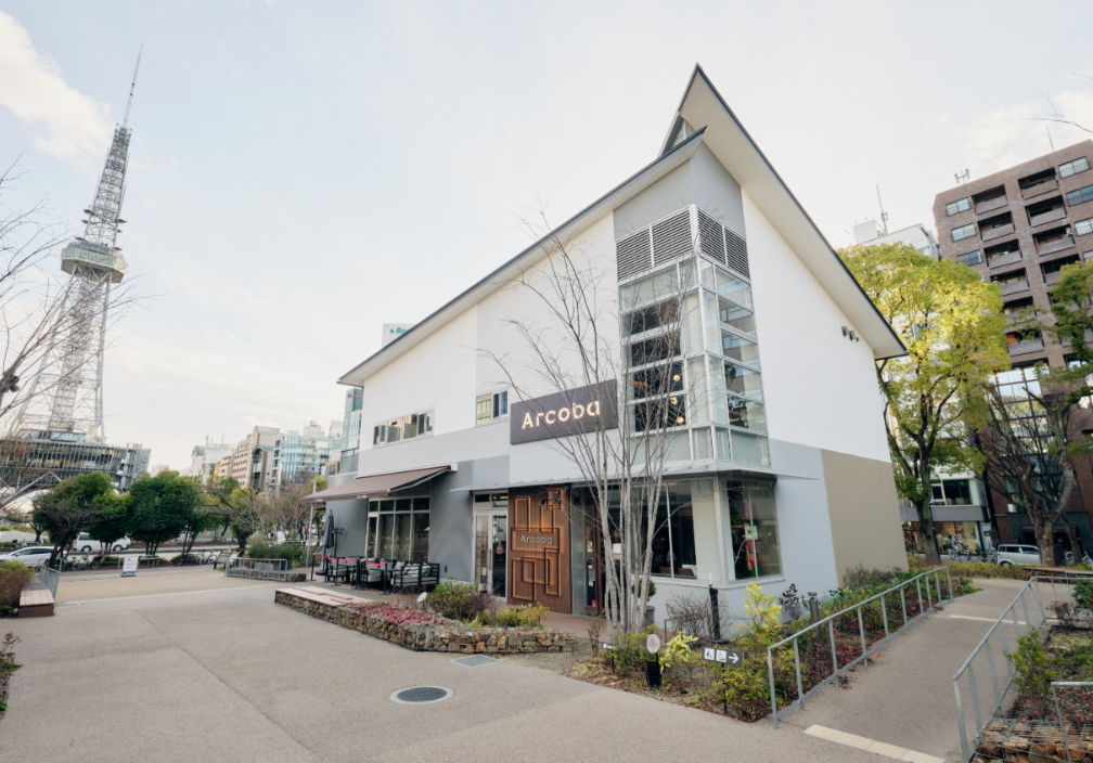 「Arcoba~アルコバ~久屋大通駅」は、緑豊かな公園内に位置する一軒家レストランで、洗練された雰囲気と贅沢な空間が広がっています。ホワイトを基調とした外観の先に、ウッド×ゴールドのラグジュアリーな店内が広がり、シックでありながら居心地の良さを感じられます。オープンテラス席や吹き抜けの階段など、開放感を楽しめる場所もあり、テラスからは美しいテレビ塔や緑の景色を一望できます。都会の喧騒を忘れ、リラックスした時間を過ごすことができます。