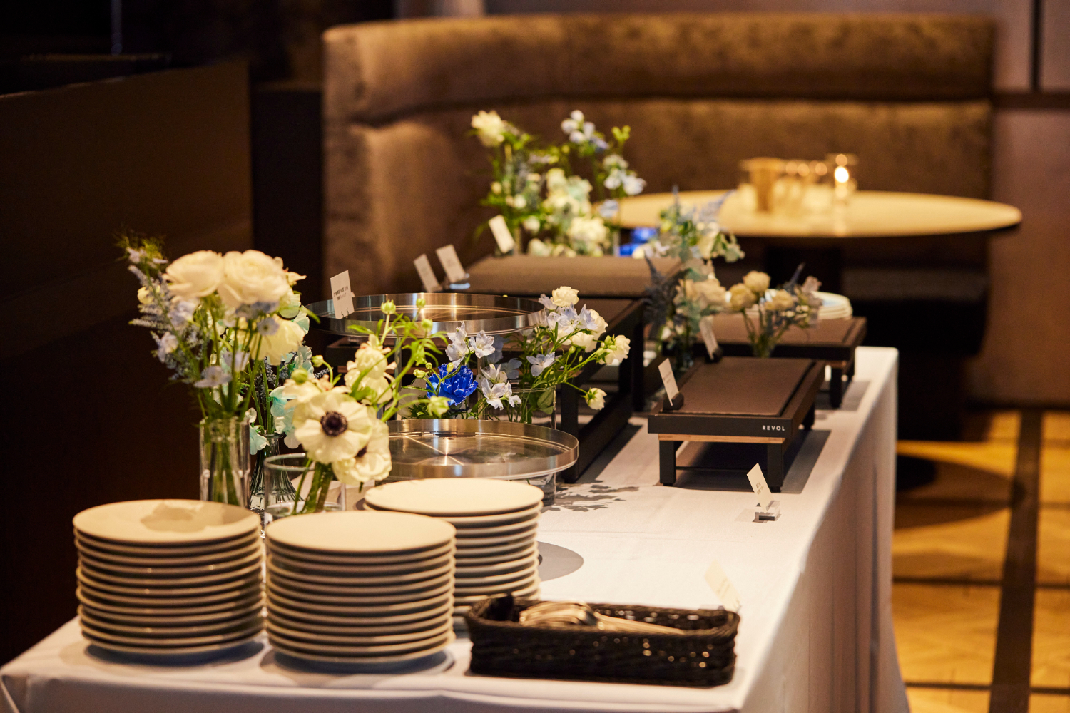 「CADRAN」では、テーブル席、カウンター席、テラス席、テーブル個室など、多彩な席タイプを完備しています。1フロア貸切で最大36名、2フロア貸切で最大50名まで収容可能で、少人数の会食から大規模なパーティーまで対応できます。個室は最大8名まで利用でき、接待や顔合わせなど、プライベート感を大切にしたいシーンにもぴったりです。店舗にはプロジェクターやマイクが完備されており、映像やスピーチを活かした演出が可能です。スムーズな時間設定も魅力で、幹事は1時間前から、ゲストは30分前から受付可能です。