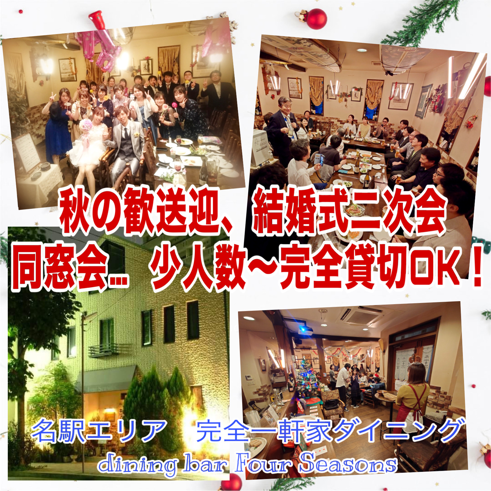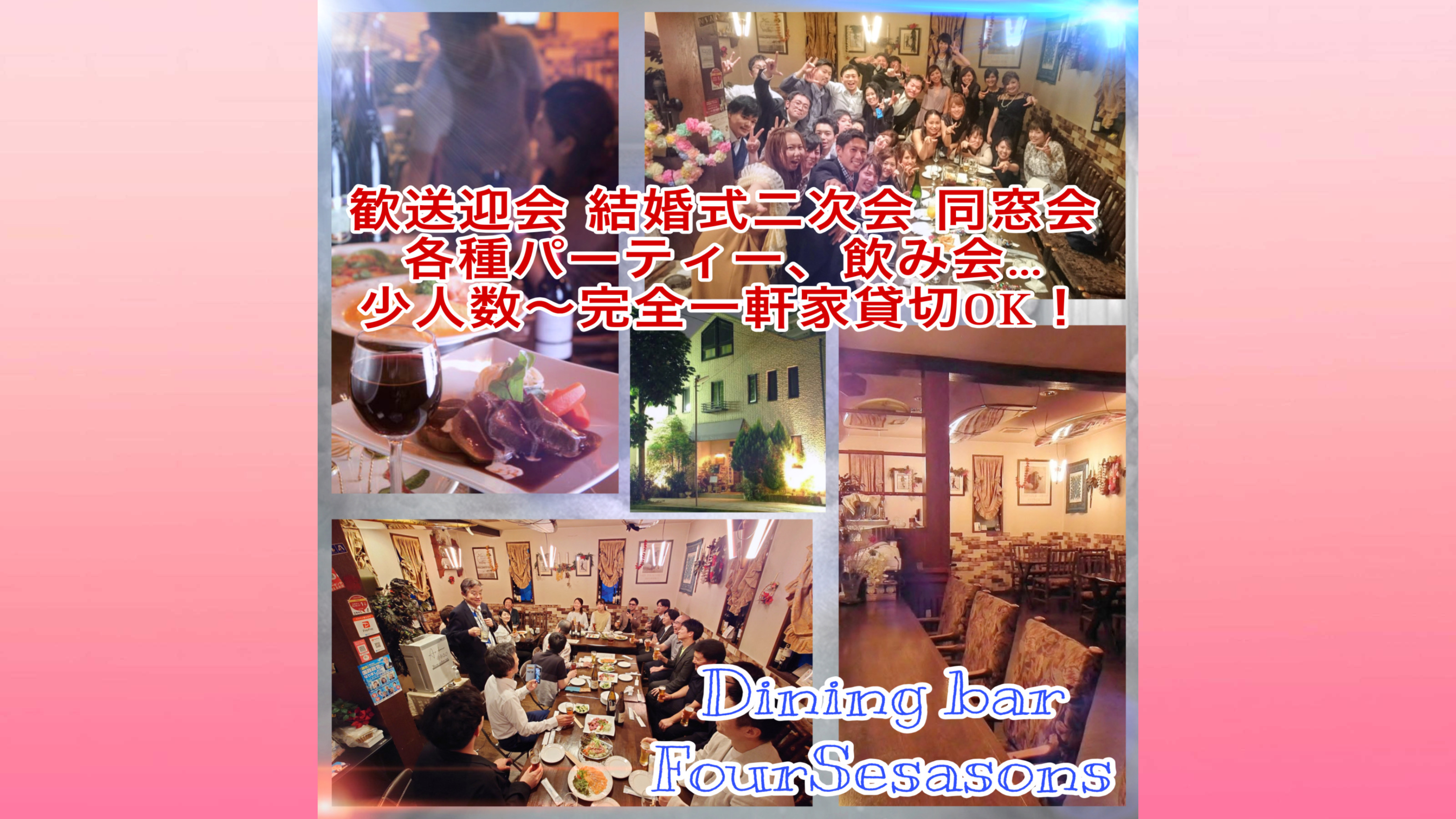 少人数〜 一軒家ダイニングバー 完全貸切可 忘新年会、歓送迎会、結婚式二次会、ミニ集会、交流会 オフ会、ライブ配信会、各種飲み会や貸切パーティー… 用途に合わせてお店をアレンジ致します! プロジェクター演出、ゲーム、余興、出し物… OK! (備品は一部有料の為、要問い)
